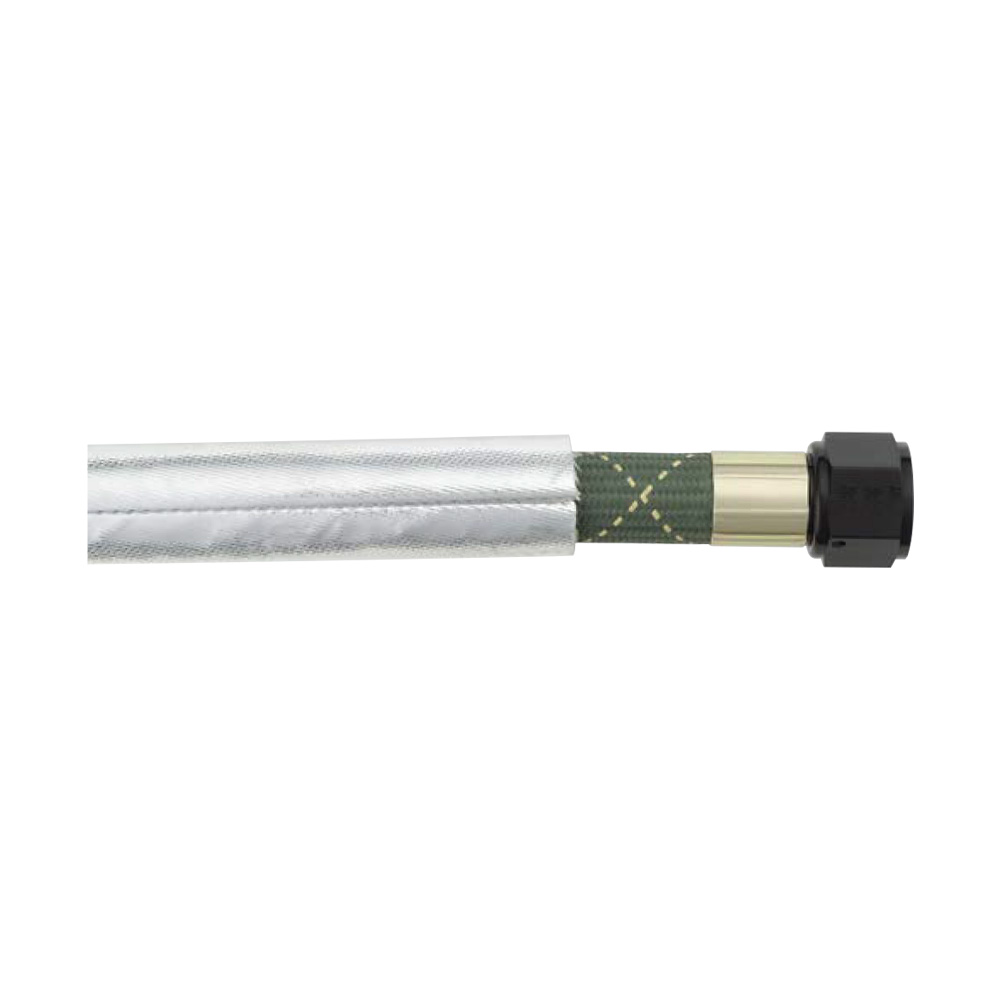 Fyre Jacket is a smooth silver silicone-coated glass sleeving, engineered to withstand continuous temperatures to 500˚F. Fyre Jacket can provide short term direct flame protection and is expandable for easy installation over completed hose assemblies.